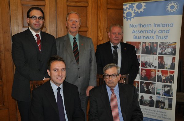 NIABT Chairperson Chris Lyttle MLA and the North Carolina Commissioner for Small Business Scott Daugherty. Back Row L-r Dr Robert Maura Irish Institute, Boston College, NIABT Member Leslie Cree MLA and NIABT Vice Chairperson John Rooney.